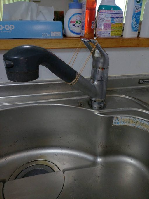 お客様が応急処置として輪ゴムで止水された状態で、蛇口が故障していたため見積をご提案し、今回は蛇口交換でご依頼いただきました。