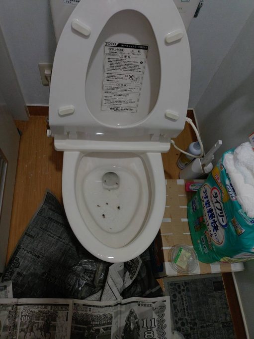 現場に到着してお話を伺うと吸水素材を落としてしまったかもしれないとのことで、点検すると異物が詰まっている症状が見られました。
