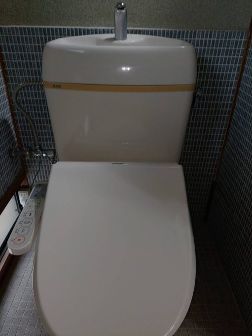 元栓をしめ、タンク、便器の順に取り外していきました。その後新しいトイレを取り付け、ウォシュレットを取り付け設定をしました。