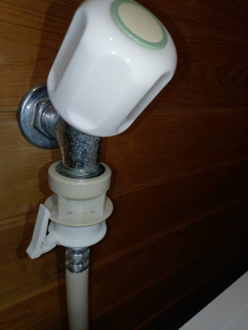 その後新しい洗濯蛇口を取り付け、元栓をあけて水漏れの確認を行いました。