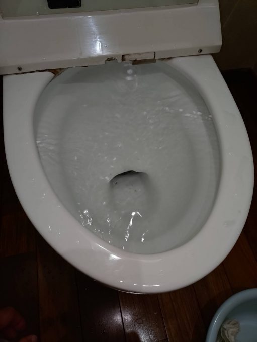 まずは止水栓をしめ、トイレを固定しているネジを外しました。その後トイレを持ち上げて外し、排水管を確認しました。