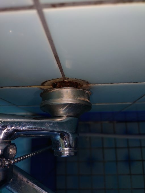 お伺いさせていただくと、「お風呂の蛇口の根元が錆びていて落ちてくる」とのことでした。