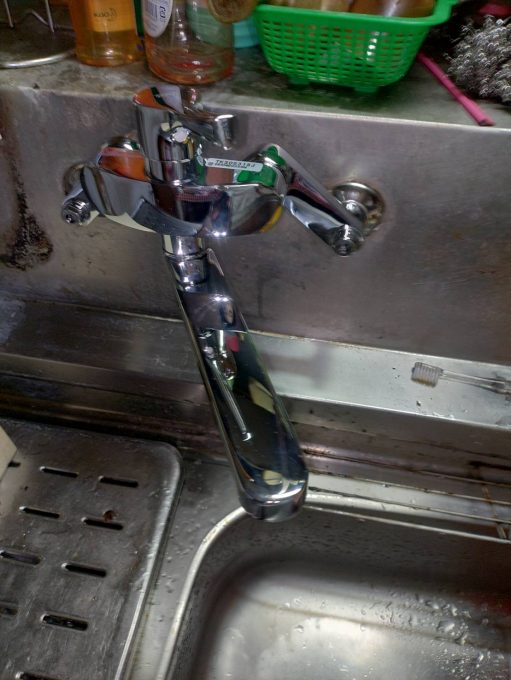 その後新しい蛇口を取り付け、通水し水漏れの確認を行いました。